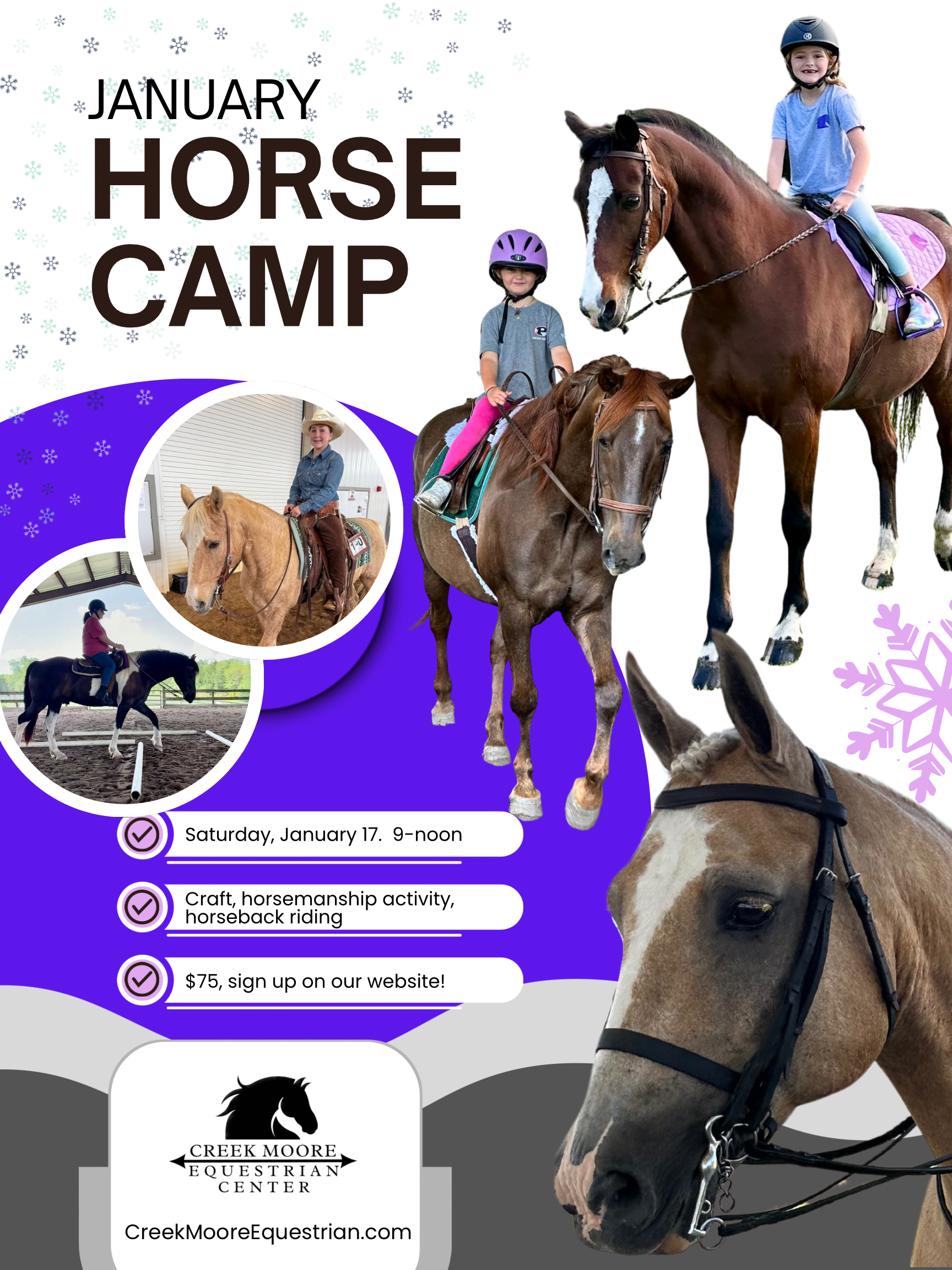 We will have a craft, horsemanship activity, horseback riding.